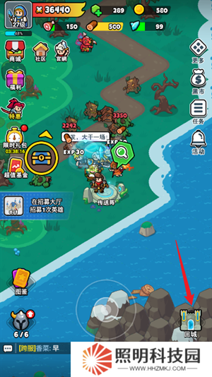 1、當我們在需要更換英雄角色是需要回到主城,點擊右下角回城。