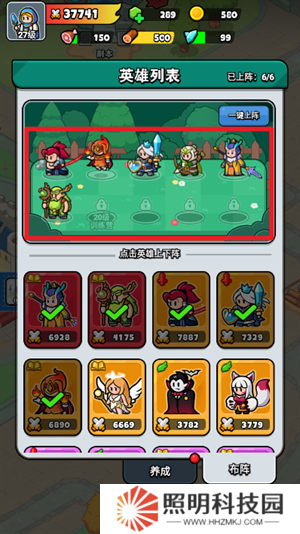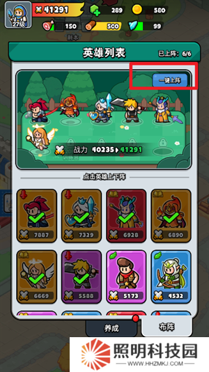 6、玩家們還可以點擊右上角的一鍵上陣進行快速的組合上陣。