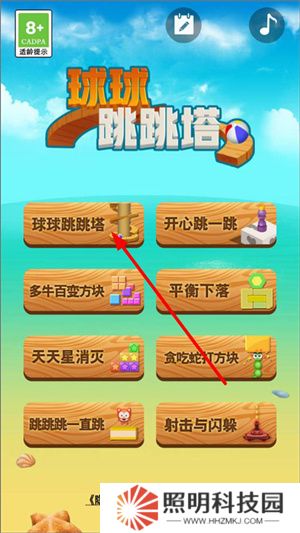 1、下載安裝進入到游戲內后,點擊球球跳跳塔進入游戲。