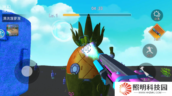 2、進入到場景內后玩家們滑動左下角按鍵控制角色移動,點擊右側進行清潔和跳躍。