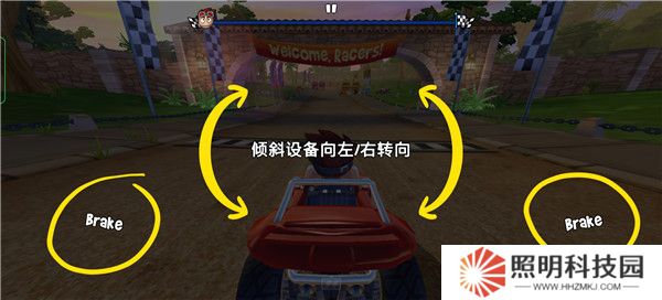 3、進入到場景中后,玩家們通過傾斜設備左右轉向控制車輛轉向。