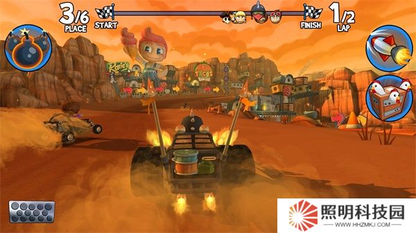 4.畫面:游戲采用了非常可愛卡通趣味十足的獨特畫風,玩家能夠感受到卡通畫面賽車駕駛樂趣。