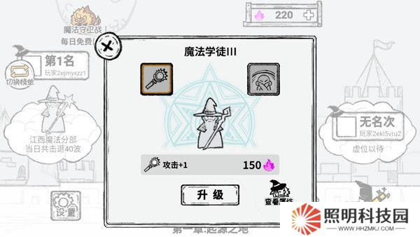 2、首先點(diǎn)擊【天賦】,玩家可通過闖關(guān)獲取的靈魂升級魔法師屬性,如攻擊力等。