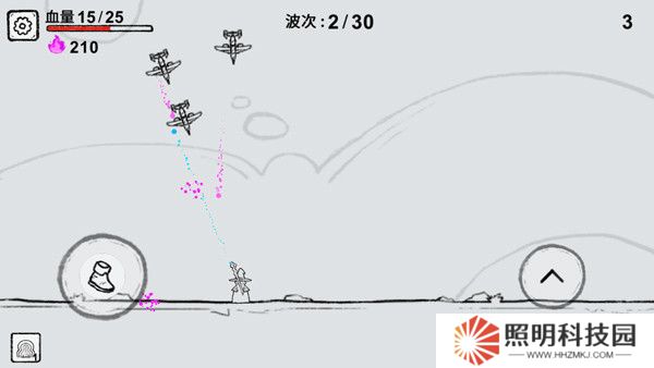 4、一切就緒后,點(diǎn)擊【開始游戲】,游戲采用橫屏操作,玩家在游戲中需操縱魔法師攻擊天上飛著的戰(zhàn)斗機(jī)。