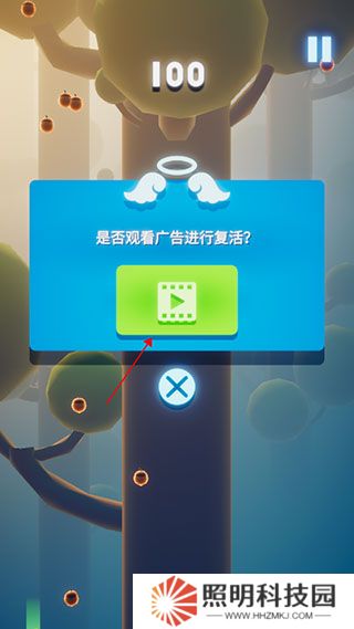 4、當(dāng)小球觸碰到障礙物后即為失敗,點(diǎn)擊即可觀看廣告進(jìn)行復(fù)活。