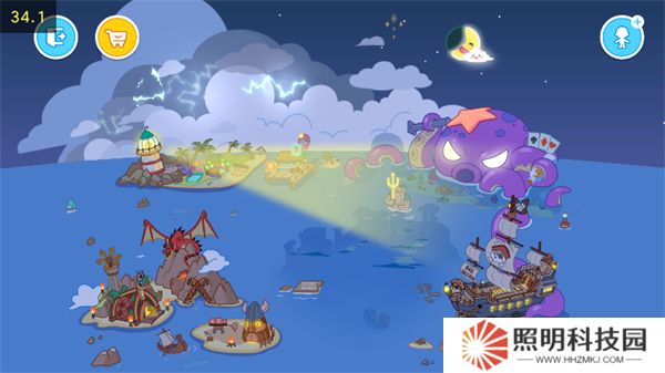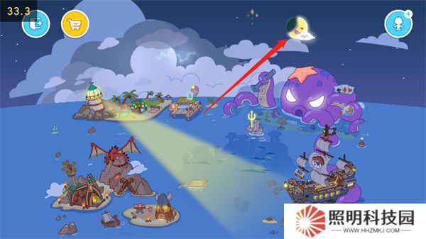 3、玩家們點擊畫面右上角的月亮即可切換白天和黑夜。