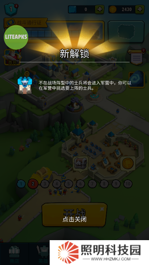 2、接著玩家們可以看到場景內的兵種以及地方兵種,點擊關卡進行挑戰。