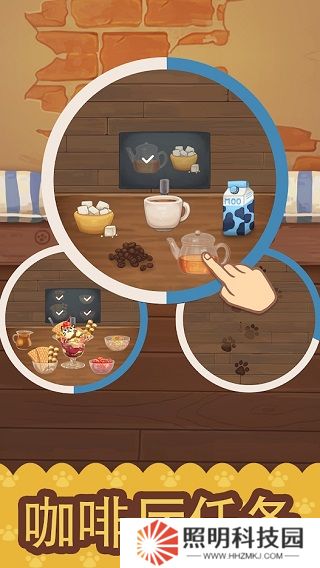 3.完成咖啡廳任務,獲取大量金幣獎勵,制作美味的咖啡提供給顧客,清理爪印,照顧可愛的小貓咪們。