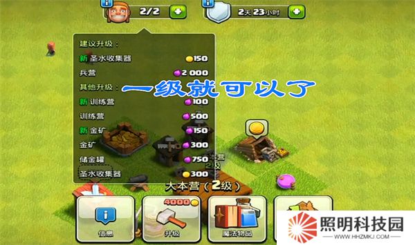 那樣和穩(wěn)本升級有什么區(qū)別,所以建議絕大多數(shù)的建筑只升一級就可以了,例如采集器、和一些防御建筑,因為在這個等級你的“資源”花得很快,所以被打的幾率就很小,所以升級這些建筑有點浪費時間,我們要把“工人”用在刀刃上。