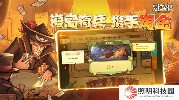 2、這是一款融合桌游與策略卡牌玩法的在線“友盡”卡牌游戲。你將表面友好的和三位玩家一起前往失落群島尋找寶藏,背地卻暗下臟手、攜款逃跑、坑害隊(duì)友,來搜刮最多的金錢,最終取得勝利。