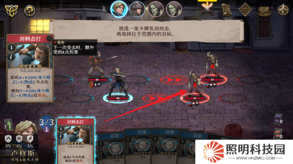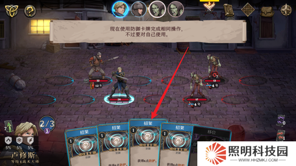 6、進入戰斗關卡之后,將會需要使用英雄的攻擊卡牌攻擊敵對的單位。