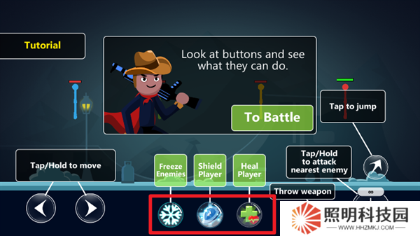 4、點擊屏幕下方中間的按鍵可以釋放技能和為角色進行治療。
