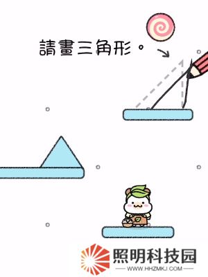 1.如下圖,在上方一筆畫出類似的三角形,讓糖果掉下來(lái)在小倉(cāng)鼠懷里。