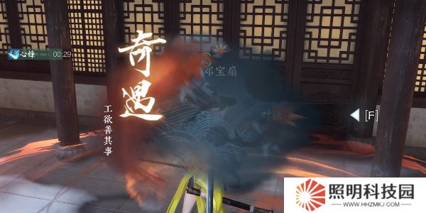 汴京【1216,751】靠近【鄧寶扇】釋放任意技能開啟奇遇【工欲善其事】,根據指引完成奇遇獲得無念門信物【凈塵帕】。