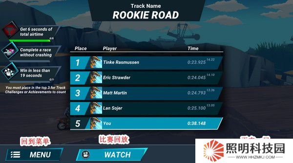 5、如果不慎摔倒,如小編剛才那樣,可能會獲得比賽的最后一名。在這種情況下,玩家可以選擇觀看剛才的賽事回放,或者迅速開始新一輪的比賽。