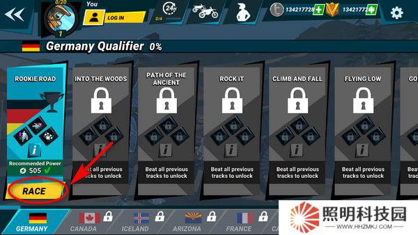 2、在比賽開始前,玩家需要先選擇賽道,選定后點擊“RACE”按鈕,系統將會自動為你匹配對手。