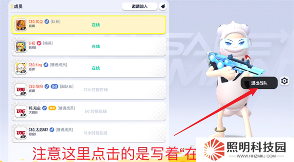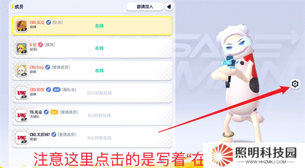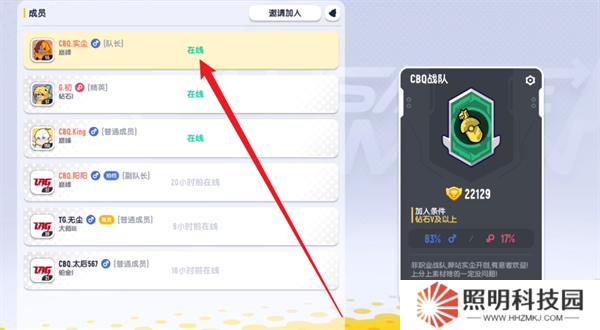 3、然后在成員的列表里面點擊自己賬號那一欄的在線標識。