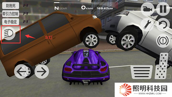 4、點(diǎn)擊左側(cè)的圖標(biāo)可以打開(kāi)賽車的車燈。