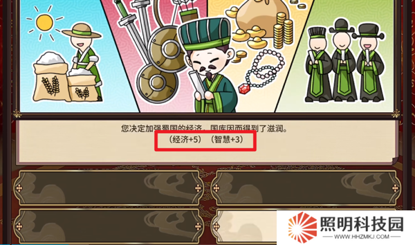 2、初始狀態下國家會擁有軍事,忠誠,民心以及經濟四個屬性,隨著你對事件進行決策,來讓屬性得到增長。