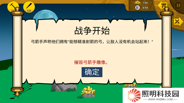 5、我們可以看到本次關卡的目標就是摧毀敵方弓箭手的雕像。