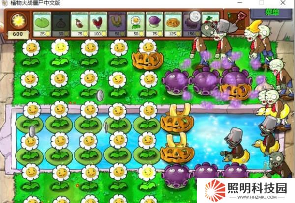 2、你在完成金幣植物以及攻擊植物的布置之后,注意留兩百個陽光,以免蒜頭或者南瓜頭被吃掉。