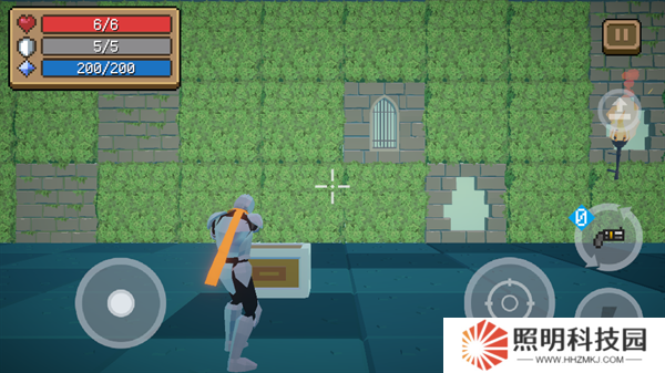 進(jìn)入到場(chǎng)景中后,我們可以看到,左側(cè)輪盤控制移動(dòng),右側(cè)按鍵控制攻擊跳躍等。