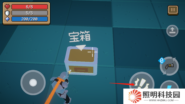 玩家們控制角色靠近前方的寶箱,點(diǎn)擊右側(cè)的感嘆號(hào)按鍵打開(kāi)寶箱。