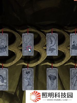 1.根據咖啡館的圖案線索來到寺廟門口,將吊牌如下圖所示進行擺放。