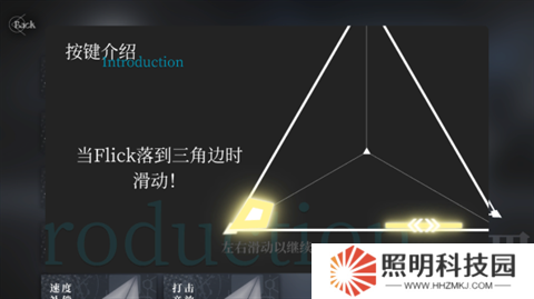 2、Flick按鍵:當Flick落到三角邊時滑動。