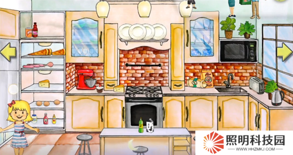 4、來到廚房之后,角色可以進行吃東西的操作。