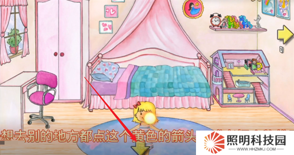 3、如果需要轉(zhuǎn)換場景,則可以點擊四周的黃色箭頭,或者將角色移動到黃色箭頭上。