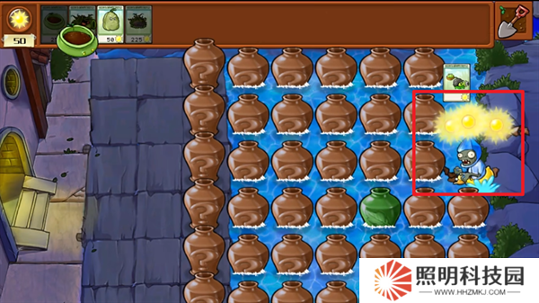 3、而棕色罐子里面的內(nèi)容是隨機的,可能是僵尸,也可能是卡牌或者陽光。