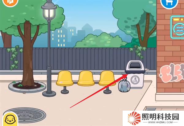 4、注意在讓角色吃東西之后,需要將*扔到商業街盡頭的*桶里面。