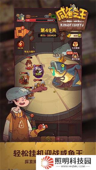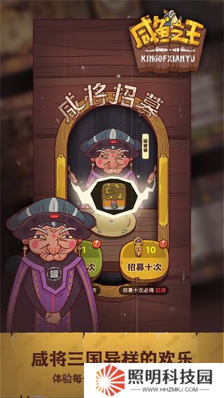 咸魚之王手游是一款玩法輕松休閑的冒險闖關類游戲,游戲中玩家將扮演一條咸魚,通過招募三國名將并借助升級、進階、裝備等方式提升戰力挑戰各種關卡和BOSS,整體的畫面上將會采用輕松幽默的畫風,搭配各種有趣的