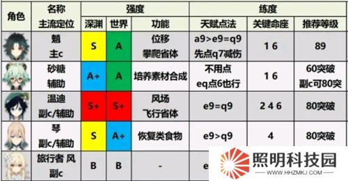 溫迪>楓原萬葉>琴>魈>砂糖>風主