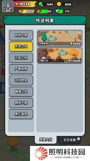 2、接著玩家們在傳送列表中選擇戰力較低的區域,點擊即可傳送。