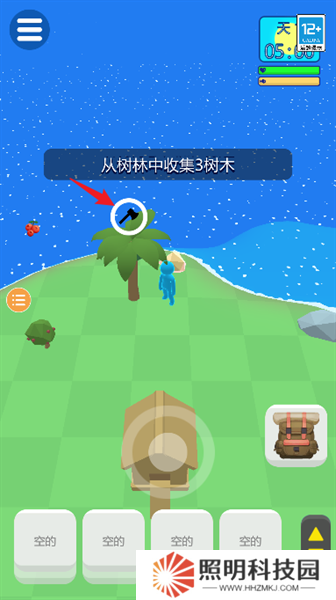 4、玩家們控制角色靠近樹(shù)木后,點(diǎn)擊上方的斧頭圖標(biāo)即可進(jìn)行砍伐。