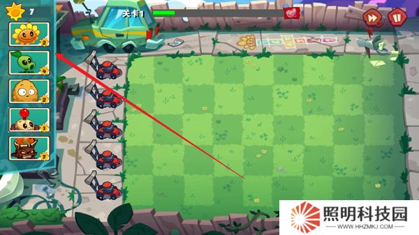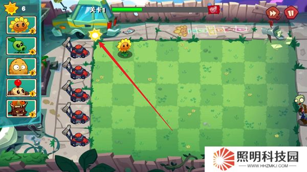 4、在關(guān)卡之中你首先需要種植向日葵,它能夠產(chǎn)出陽(yáng)光,來(lái)幫助你更好的種植其他植物。