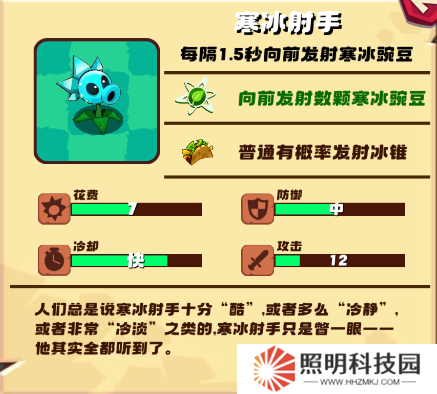 每隔1.5秒向前發(fā)射寒冰豌豆。