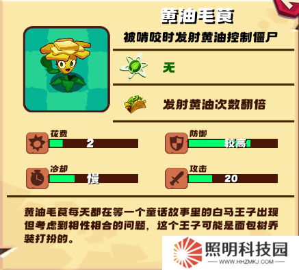 被啃咬時(shí)發(fā)射黃油控制僵尸。