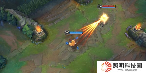 扔出一顆手雷,對目標區域造成85魔法傷害和持續2秒的35%減速效果,位于區域中心的敵人將暈眩1秒。,命中敵方英雄將使附近的炮臺完全充能。
