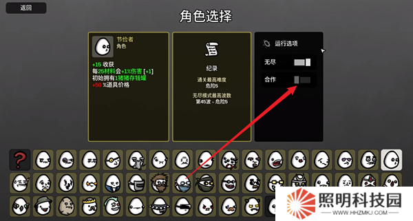 2、然后就會進入到選擇角色的環節,注意此時需要將上方的合作按鈕打開。