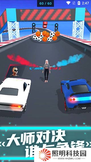 2、游戲里的賽道上有很多障礙和移動(dòng)的道具,碰到可能會(huì)導(dǎo)致減速甚至車輛損毀,玩家需要保持平衡巧妙避開(kāi)他們。
