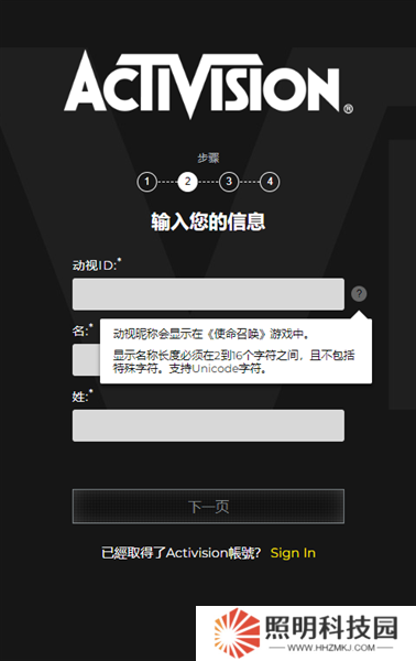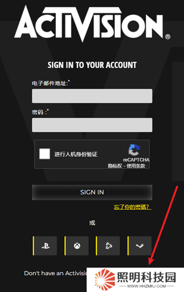 1、玩家們首先需要進入動視的網站,打開動視賬號的登錄界面,點擊最下方的建立一個賬號。