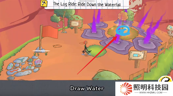 4、比如遇到了枯萎的樹木,則需要使用藍色的畫筆來進行繪制,創造水源。