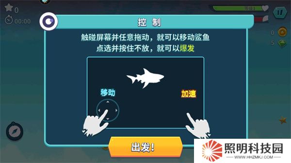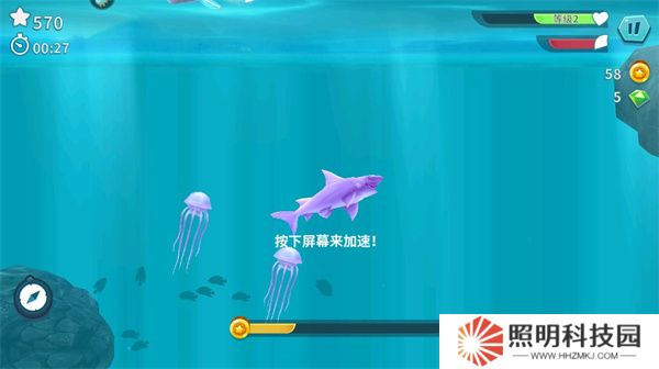 4、玩家們可以按住屏幕可以加速鯊魚進行捕食。