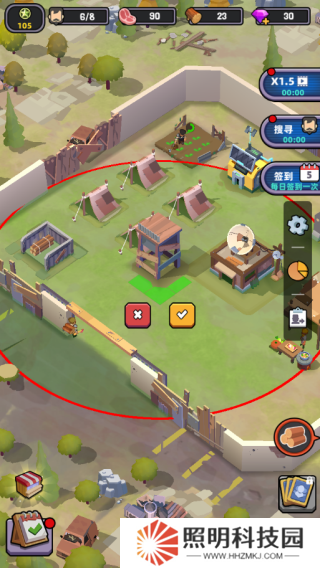 3、接著玩家們點擊場景內的空地,在點擊黃色圖標即可進行建造。