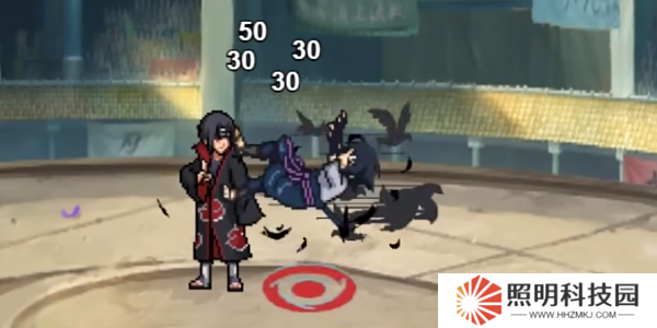 1a苦無橫斬,2a二連踢,3a結印變成烏鴉沖擊攻擊并留下分身,4a回頭使用天照終結。