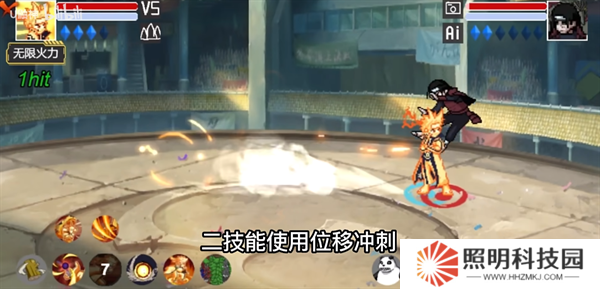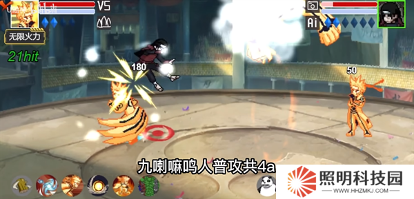 九喇嘛鳴人普攻共4a,前3a具有很長的位移,4a可以抓取敵方并扔出,還能通過搖桿換位,按住下方向留在原地,按住上方向會移動到空中。