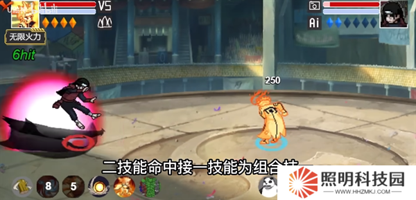 二技能滑普攻使用九喇嘛反彈,可以彈飛敵方或者敵方飛行物技能。